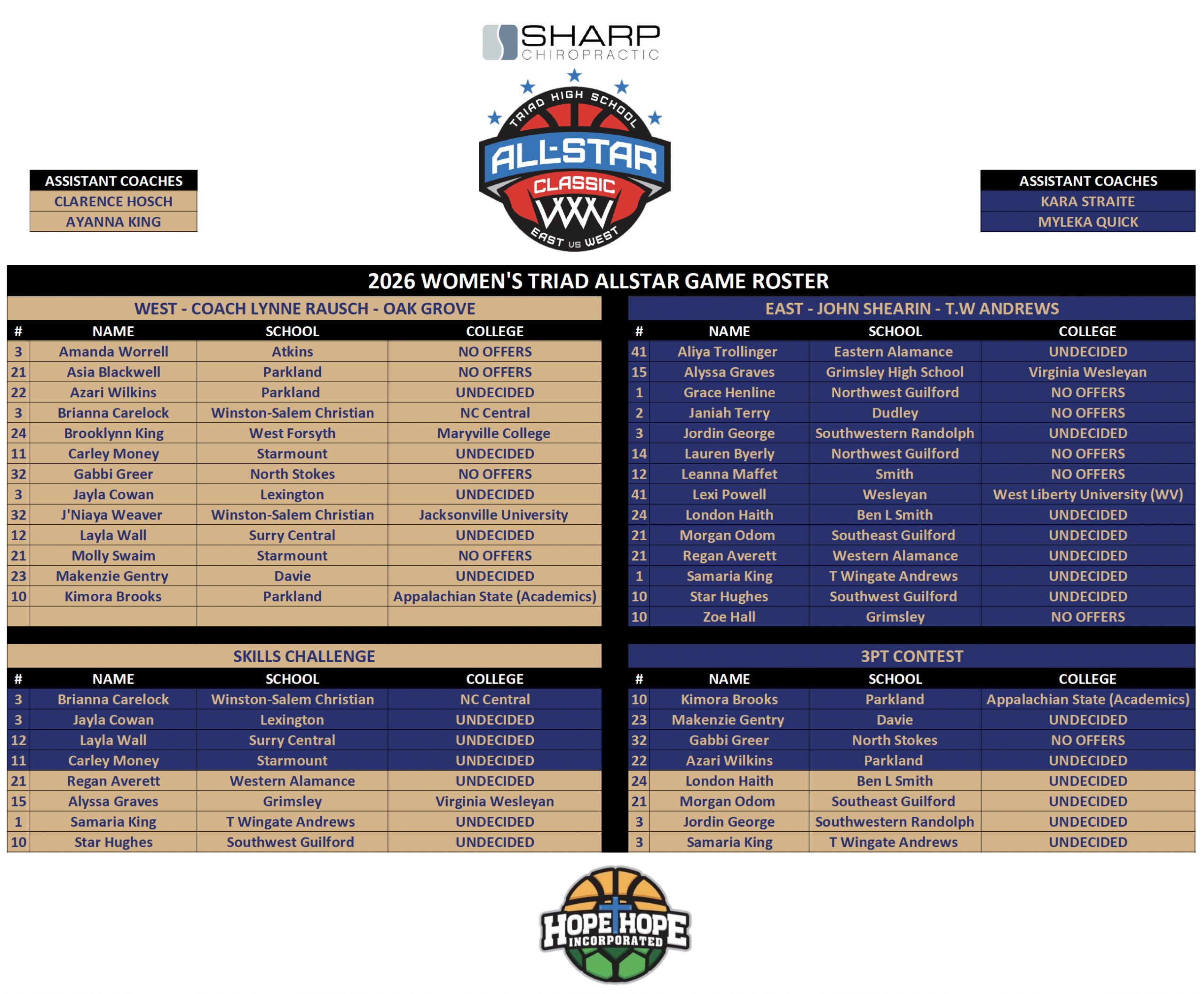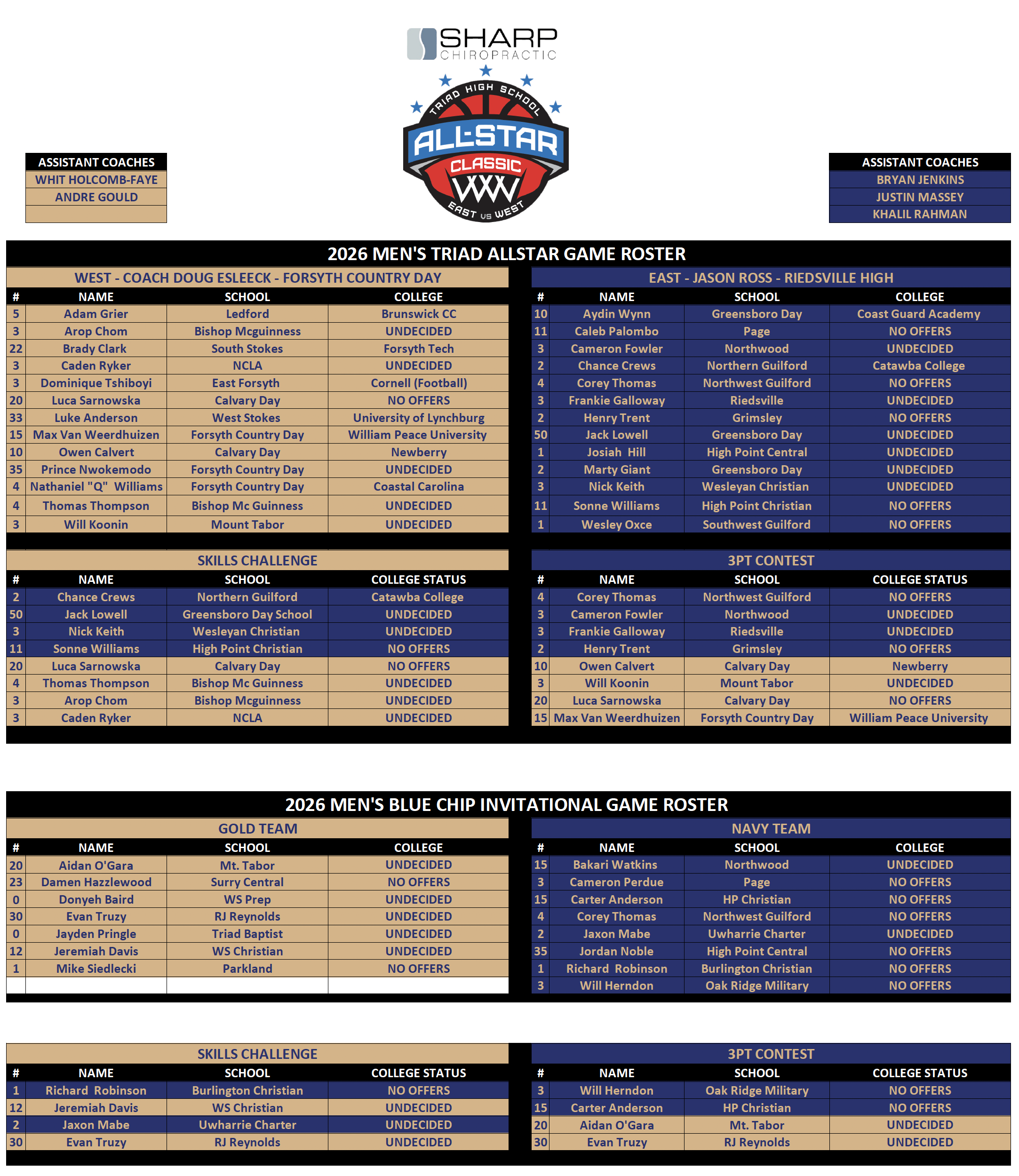 Triad All-Star College Coaches Rosters